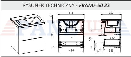 AQUAFORM Set FRAME 50 szafka +umywalka biała + uchwyt czarny