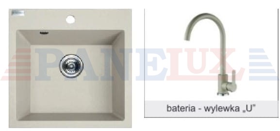 AQUAFORM zlewozmywak granitowy Maranello beżowy+bateria wylewka U 44x57x215 1komora+1/2ociekacz