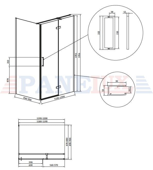 LICOWANY ZAWIASMetalowy zawias licowany z taflą szkła po wewnętrznej stronie kabiny, pozwala na łatwe utrzymanie jej w czystości.