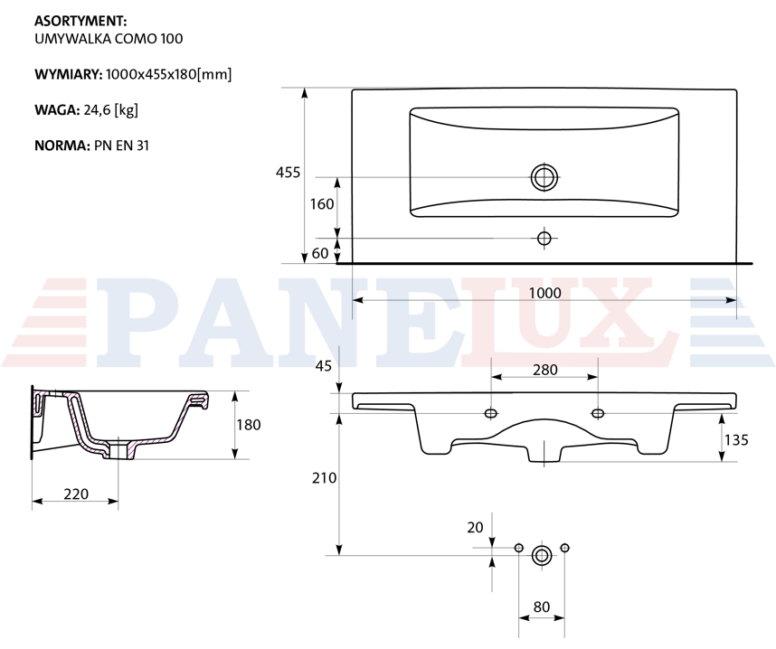 SET C144 TIRSO 100 BIAŁY MATOWY (SZAFKA + UMYWALKA COMO)