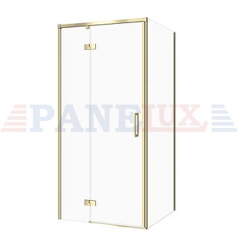 Kabina prysznicowa została wykonana z bezpiecznego szkła hartowanego o grubości 6 mm, które zapewnia stabilność konstrukcji oraz gwarantuje bezpieczeństwo użytkowania. Szkło wyposażone jest w ochronną powłokę hydrofobową CleanPro skutecznie zapobiegającą osadzaniu się kamienia oraz zanieczyszczeń, co pozwala na łatwiejsze utrzymanie kabiny w czystości. Metalowy zawias licowany z taflą szkła po wewnętrznej stronie kabiny posiada funkcję unoszenia i opuszczania drzwi, dzięki czemu żywotność uszczelek jest wydłużona. Innowacyjny mechanizm zawiasu pozwala na zatrzymanie drzwi, gdy te otworzą się pod kątem 90° co zapewnia ochronę przed przypadkowym uderzeniem. Dwustronne uchwyty z wysokiej jakości metalu mają radełkowe wykończenie przez co łączą w sobie stylistykę z funkcjonalnością i trwałością. Profil ścienny z regulacją zapewnia większą elastyczność montażu, gdyż jest przystosowany do użycia przy nierównych ścianach. Kabina kwadratowa narożna. Wersja lewa. Wysokość 195 cm. Drzwi uchylne z zawiasami punktowymi. Profile w kolorze złoty matowy. Szkło transparentne. Kabina przeznaczona do montażu z brodzikiem lub bezpośrednio na posadzce. Do kompletowania z kabiną dostępna jest szeroka oferta odpływów liniowych oraz brodzików prysznicowych w różnej kolorystyce i wysokości co umożliwia swobodę konfiguracji. Wysoką jakość produktu potwierdza długoletnia gwarancja.