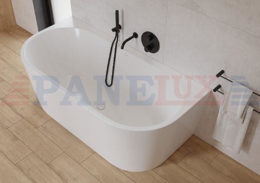 Przyścienna wanna wolnostojąca CREA to rozwiązanie dla osób pragnących połączyć monolityczne piękno wanny wolnostojącej z aspektem funkcjonalnym w aranżacji przestrzeni łazienkowej. Wolnostojąca wanna przyścienna umożliwia zastosowanie zarówno armatury ściennej jak i na wannowej – możliwość wiercenia otworów w rancie wanny. Wyrób jest również wyposażony w wygodną przestrzeń na przybory kąpielowe w postaci komfortowej półki, przylegającej do ściany. Do produkcji wyrobu zastosowano doskonałej jakości akryl - materiał tłumiący dźwięk uderzającej wody i sprawiający, że powierzchnia wanny jest ciepła i przyjemna w kontakcie. Przyjemna temperatura kąpieli utrzymuje się dłużej. Poza solidną konstrukcją, wolnostojącą wannę akrylową wyróżnia waga, która jest niższa od wyrobów z konglomeratu.