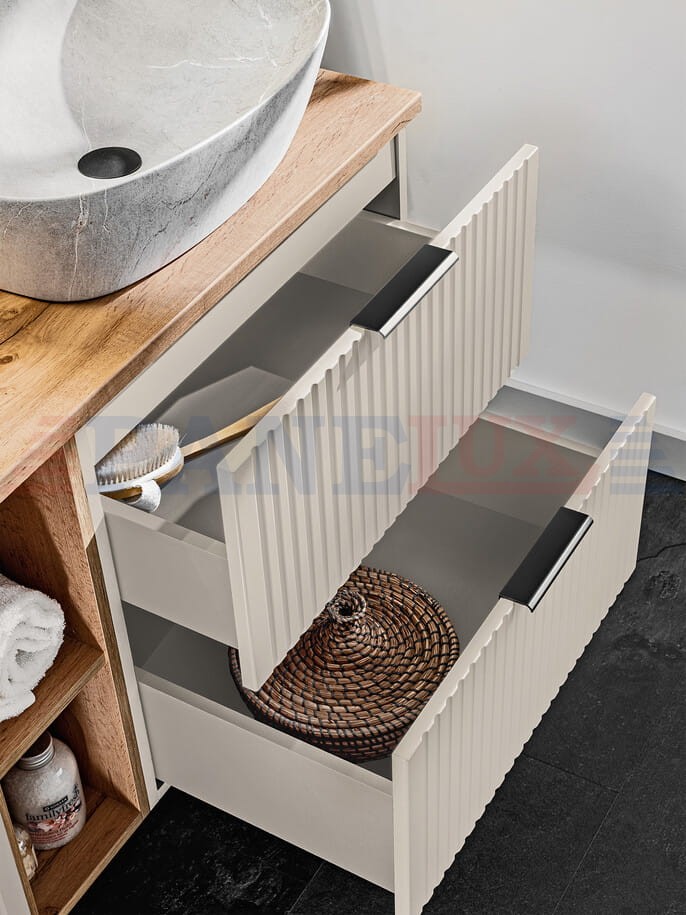 - ryflowane fronty wykonane z płyty MDF