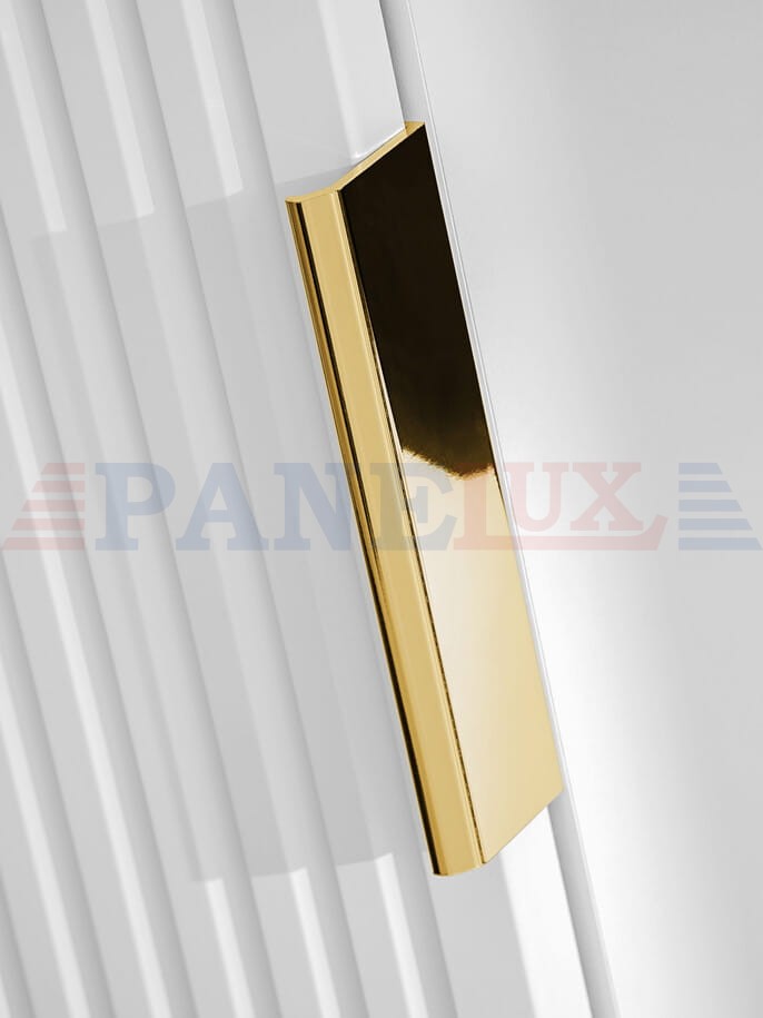 Uchwyty w trzech kolorach - złoty połysk, chrom połysk oraz czarny mat - nadają jej stylowy wygląd.
