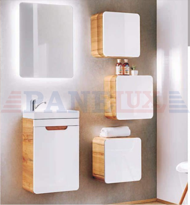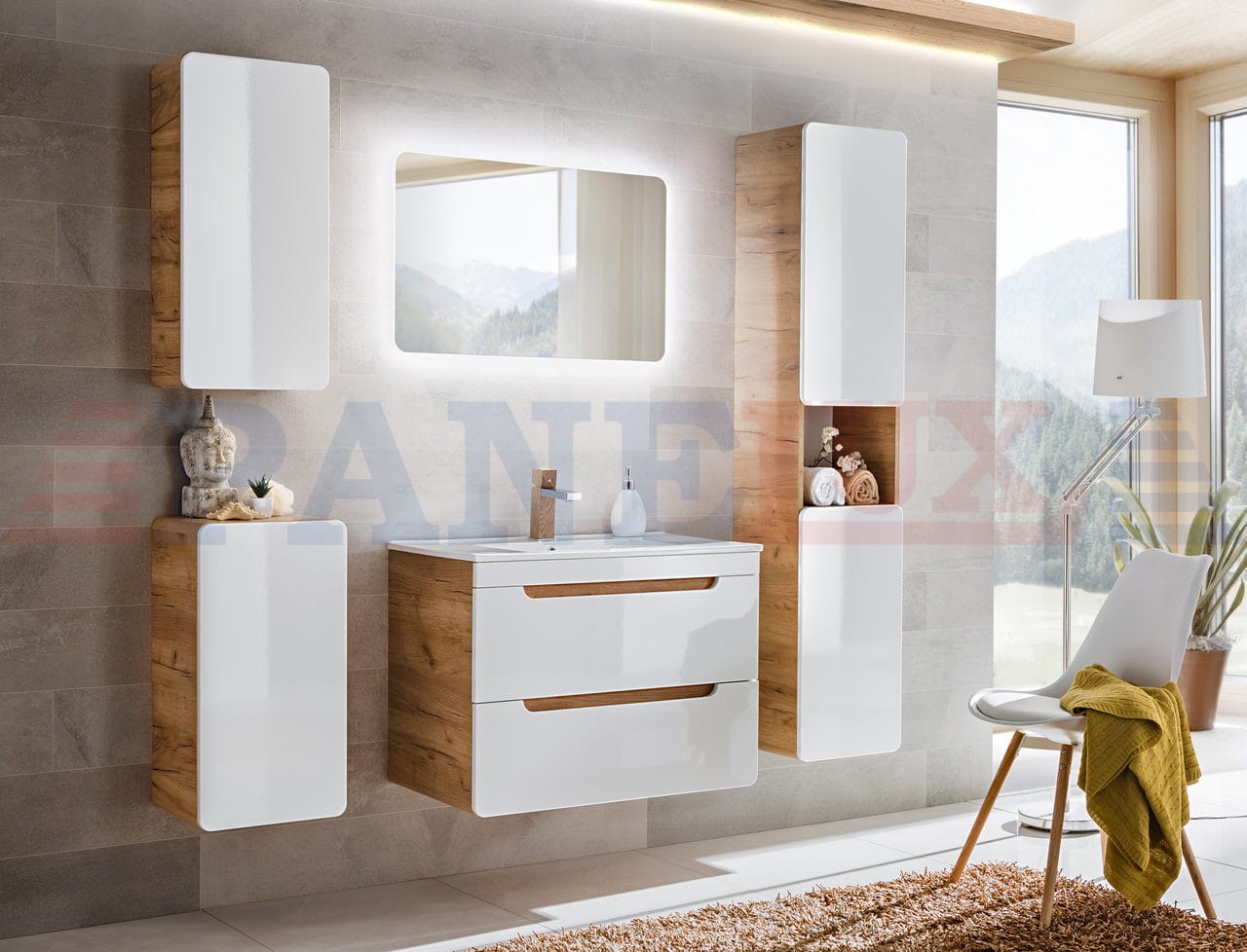 Aruba to niezwykła kolekcja, która zachwyca lekkim i nowoczesnym designem. Korpusy w kolorze drewna w połączeniu z białymi frontami tworzą delikatną całość w klimacie tropikalnego SPA. Zaokrąglone kanty wszystkich szafek dodają kolekcji niebanalnego charakteru i lekkości, a fronty bez uchwytów nawiązują do najnowszych trendów wnętrzarskich. Kolekcja składa się z niskich i wysokich szafek w różnych wariantach, co pozwala na skomponowanie indywidualnego i niepowtarzalnego zestawu. Niewątpliwie ciekawym i niezwykle modnym rozwiązaniem jest szafka pod umywalkę nakładaną. Doskonałym dopełnieniem serii jest lustro z podświetleniem LED, które nadaje całej serii nowoczesnego charakteru. Kolekcja Aruba przypadnie do gustu wszystkim, którzy szukają niebanalnych i nowoczesnych rozwiązań do swojej łazienki.
