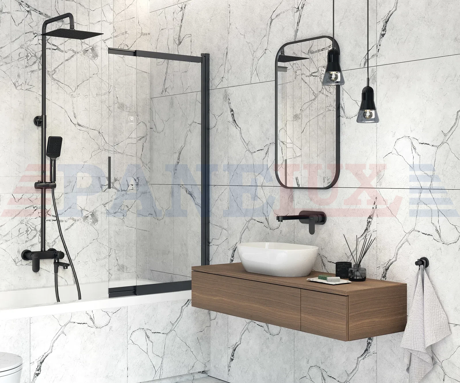 DEANTE Deszczownica z baterią wannową - ruchoma wylewka ALPINIA NERO