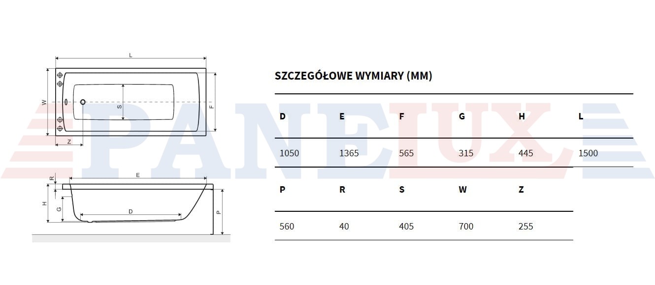 - wanna prostokątna 1500x700