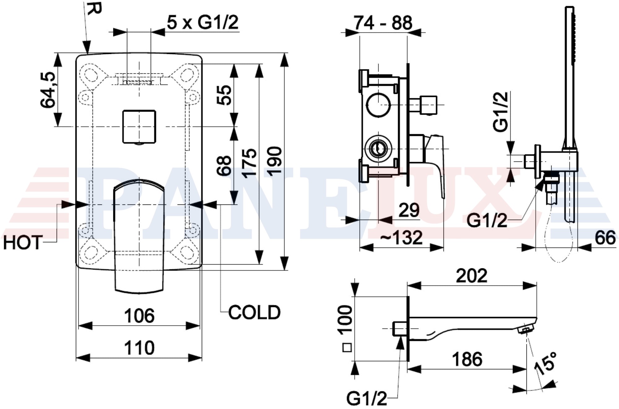 KFA ARMATURA KRAKÓW MOKAIT BLACK ZESTAW WANNOWY PODTYNKOWY Z BATERIĄ 3-FUNKCYJNĄ