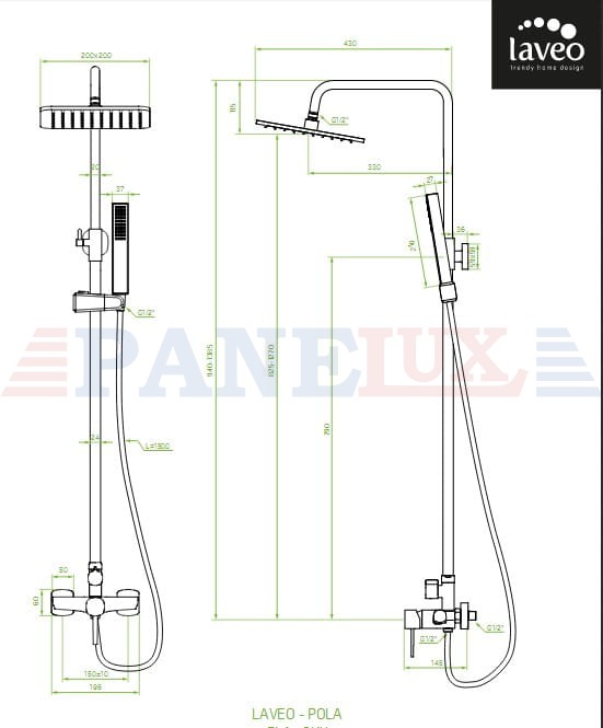 LAVEO Pola – kolumna natryskowa z baterią black