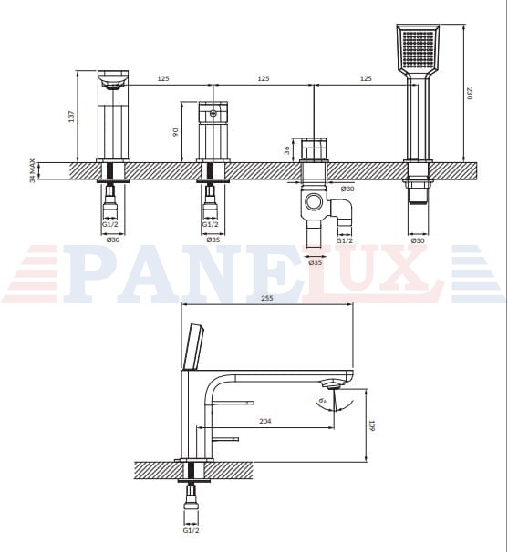 APURE | bateria wannowa 4-otworowa