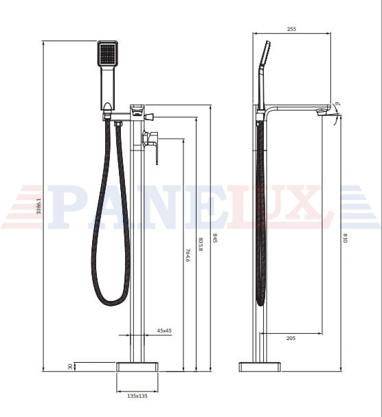 OMNIRES APURE bateria wannowa wolnostojąca chrom połysk