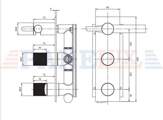 CONTOUR | bateria prysznicowo-wannowa podtynkowa z rączką prysznicową