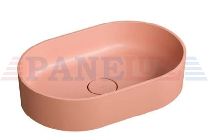 OVO w kolorze coral (RAL3012) to umywalka w subtelnym odcieniu różu, o aksamitnej w dotyku, matowej powierzchni.