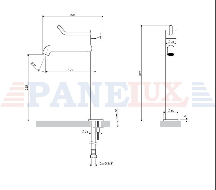 - wysokość wypływu wody: 22,5 cm