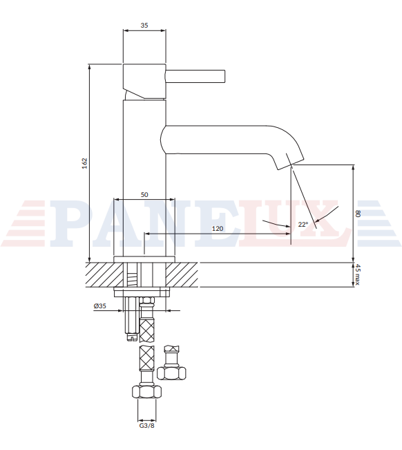 - zasięg wylewki: 12 cm,