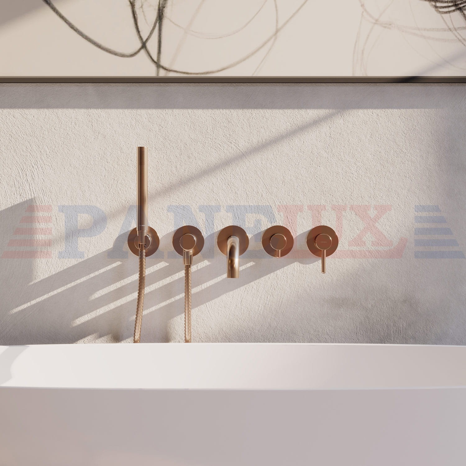 OMNIRES Y bateria wannowa 5-otworowa podtynkowa z długą wylewką miedź szczotkowana