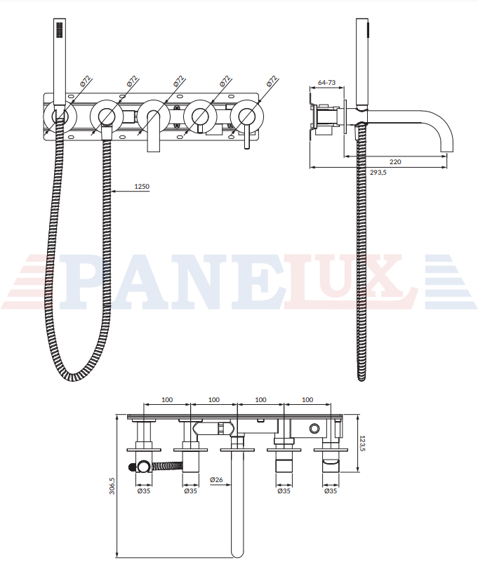 Y | bateria wannowa 5-otworowa podtynkowa