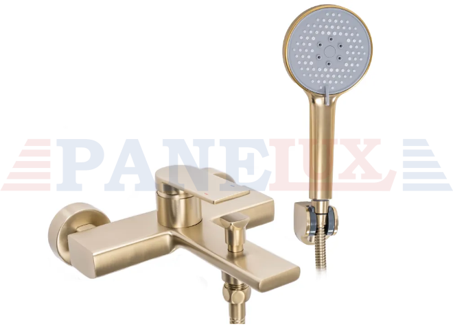 Prezentujemy Państwu piękną, niezwykle funkcjonalną i nowoczesną baterię wannową. Jest to produkt, który w doskonały sposób wypełni Państwa przestrzeń łazienkową zachowując nienaganny wygląd i estetykę wnętrza. Bateria jest przystosowana do montażu ściennego. Została wykonana z mosiądzu pokrytego potrójną złotą warstwą. Dzięki specjalnej fazie produkcji jest trwała i łatwa w utrzymaniu czystości.