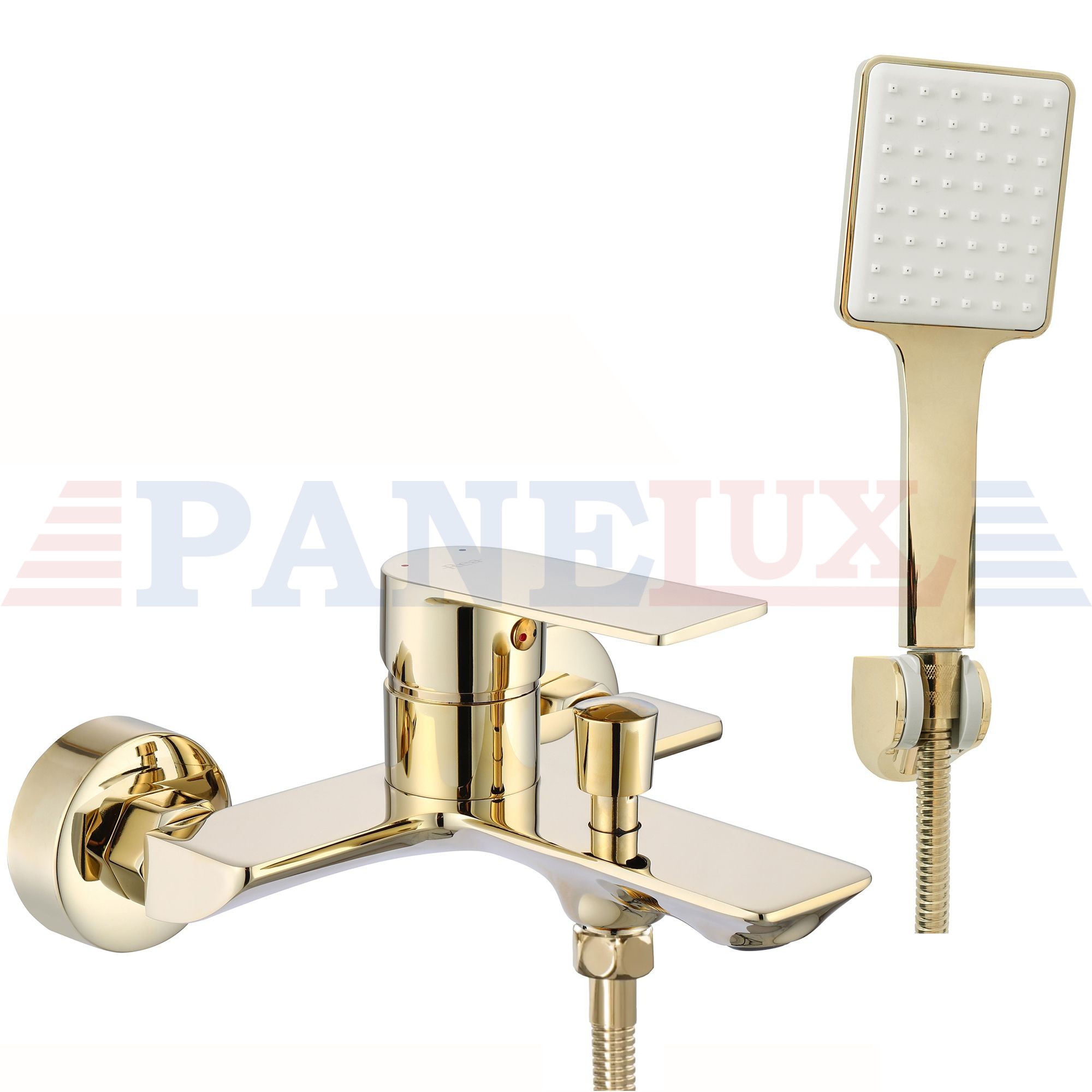 Prezentujemy Państwu piękną, niezwykle funkcjonalną i nowoczesną baterię wannową. Jest to produkt, który w doskonały sposób wypełni Państwa przestrzeń łazienkową zachowując nienaganny wygląd i estetykę wnętrza. Bateria jest przystosowana do montażu ściennego. Została wykonana z mosiądzu pokrytego potrójną złotą warstwą. Dzięki specjalnej fazie produkcji jest trwała i łatwa w utrzymaniu czystości.