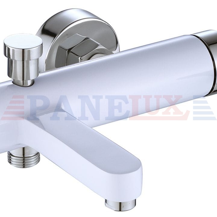 Prezentujemy Państwu piękną, niezwykle funkcjonalną i nowoczesną baterię wannową. Jest to produkt, który w doskonały sposób wypełni Państwa przestrzeń łazienkową zachowując nienaganny wygląd i estetykę wnętrza. Bateria jest przystosowana do montażu ściennego. Została wykonana z mosiądzu pokrytego potrójną białą warstwą. Dzięki specjalnej fazie produkcji jest trwała i łatwa w utrzymaniu czystości.