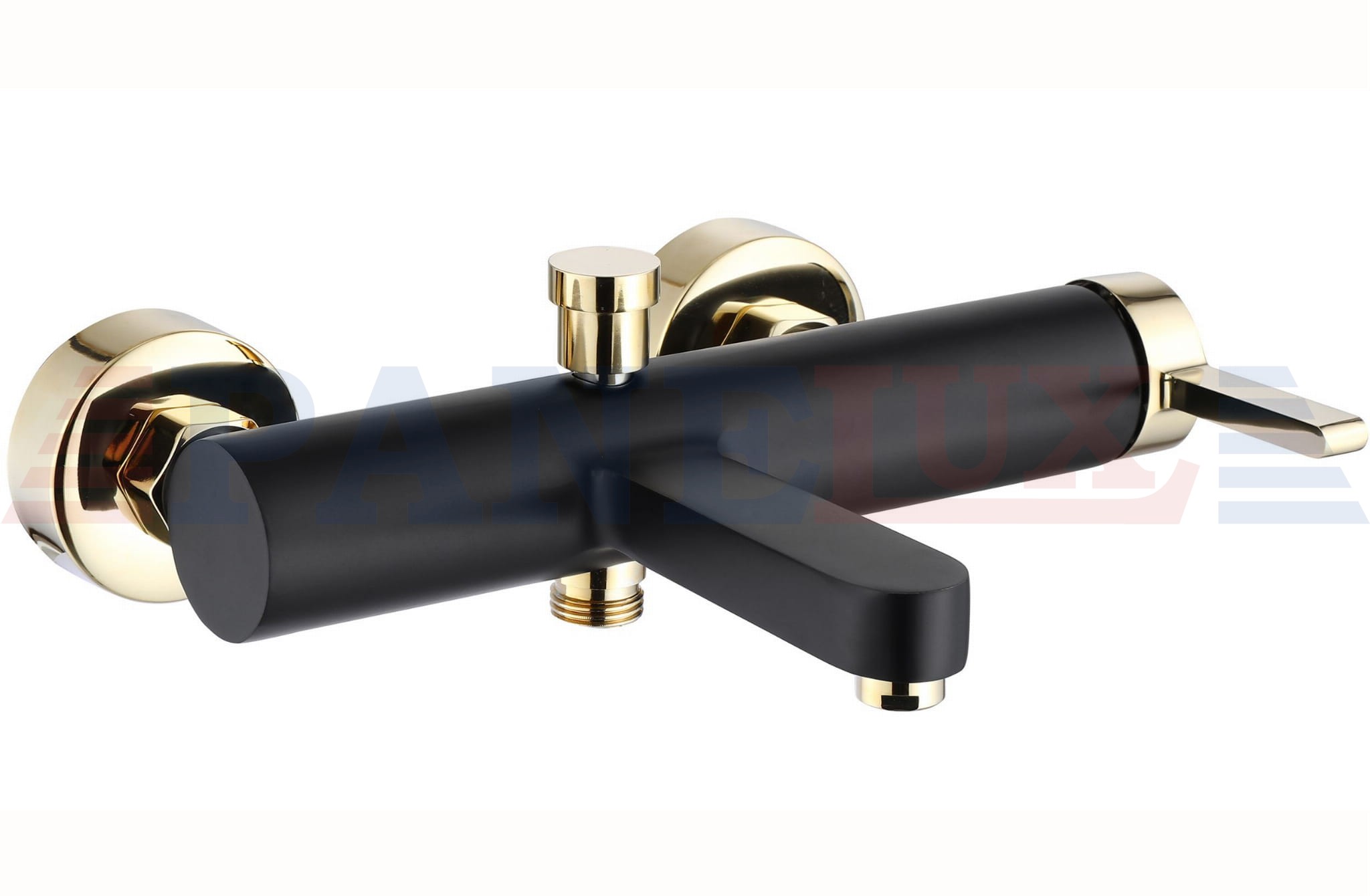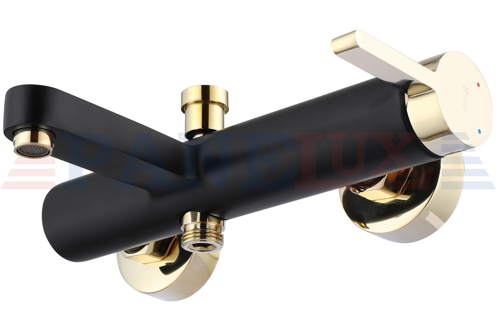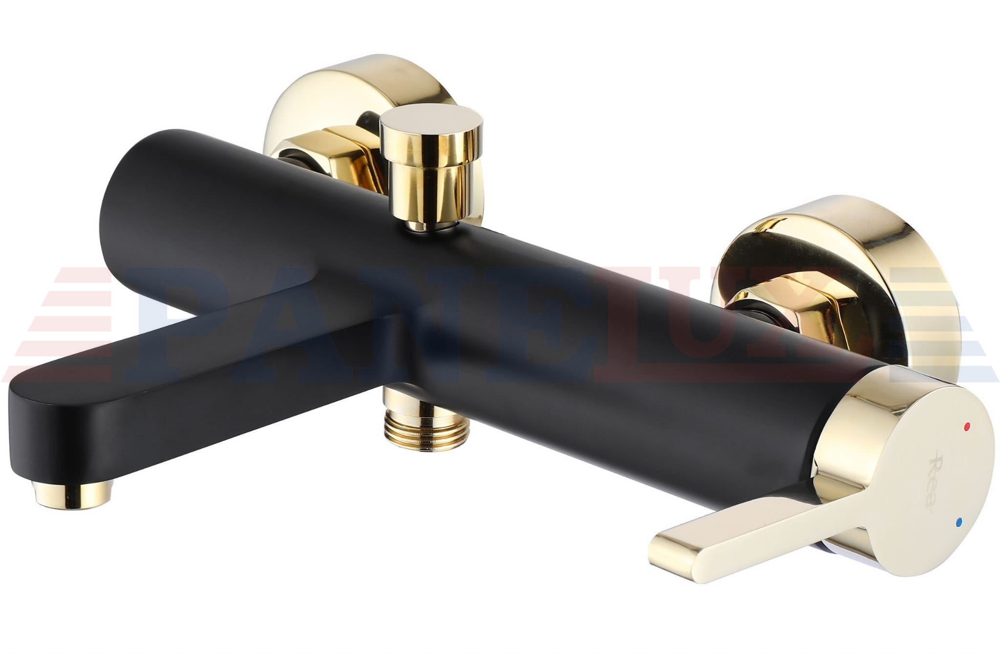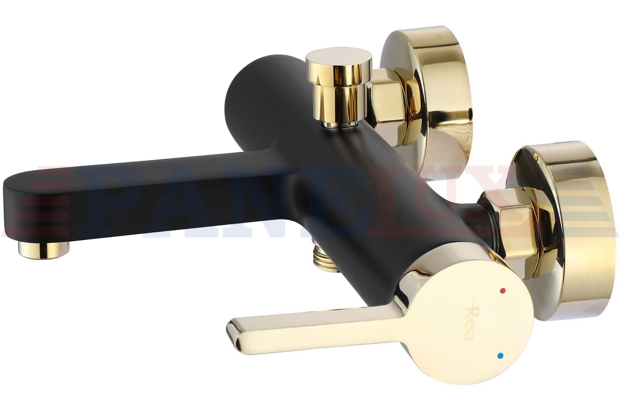 Bateria wannowa Rea Polo to model, który został wykonany z wysokiej jakości mosiądzu o czarnym matowym wykończeniu i złotym błyszczącym.