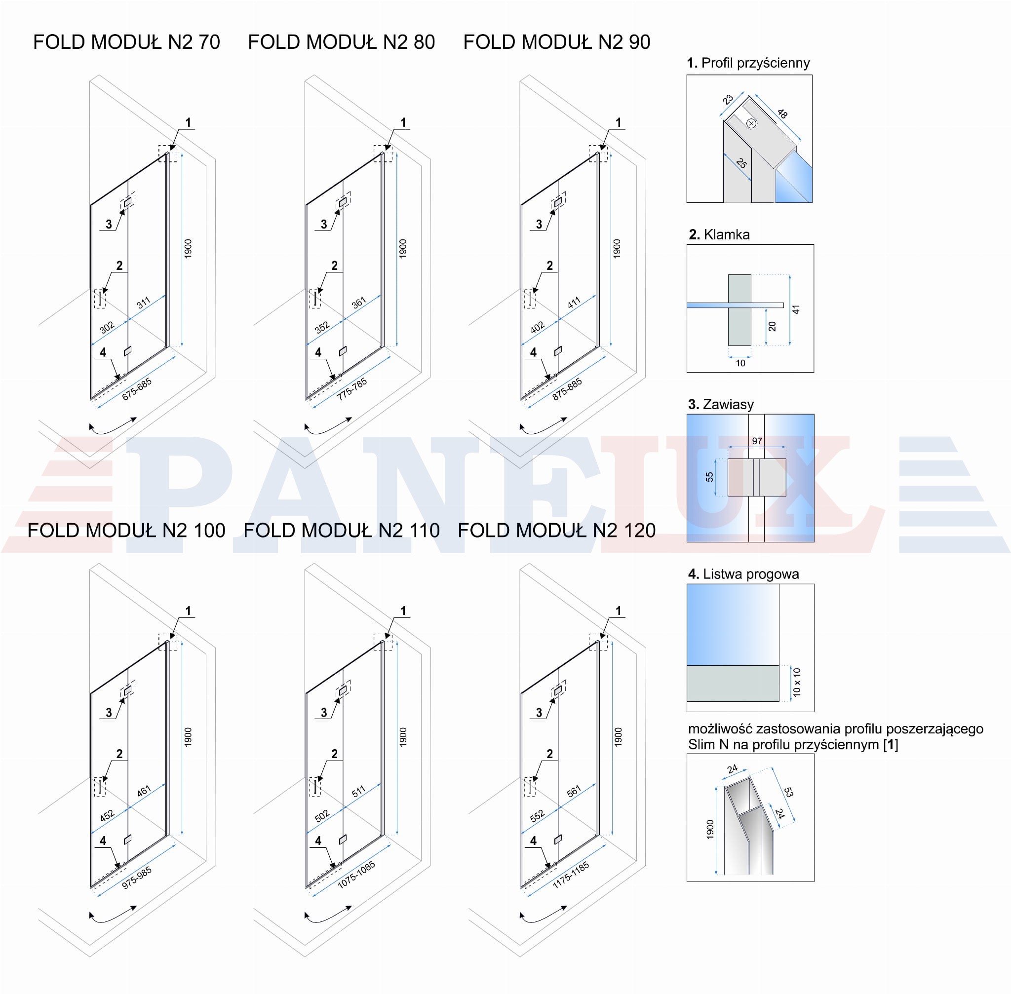 | Regulacja na profilach: | 10 mm |