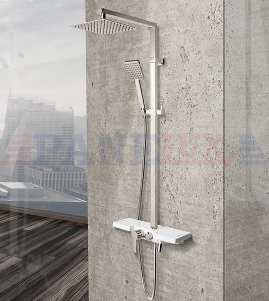 - - bateria prysznicowa z wylewką wbudowaną w wygodną półkę