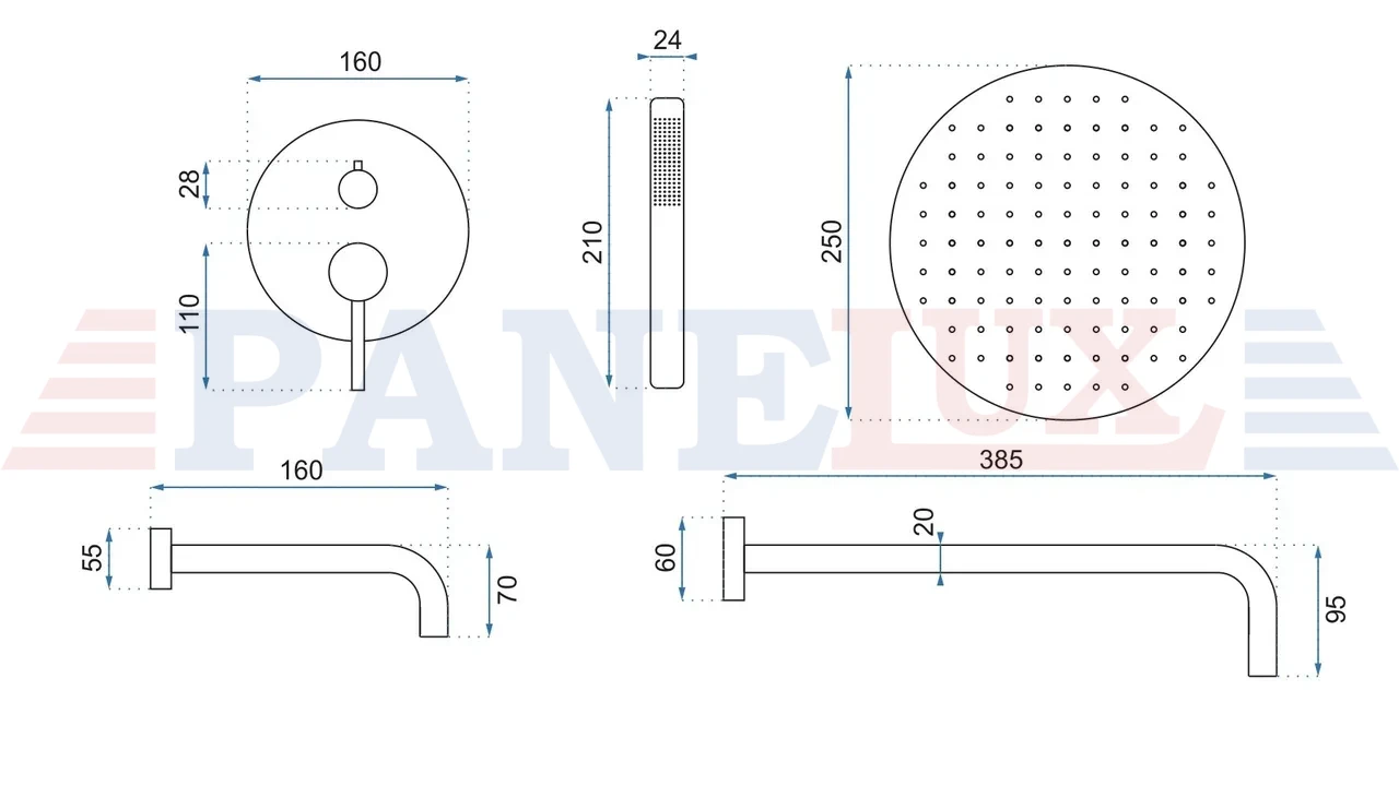 | W zestawie: | bateria podtynkowa, deszczownica, ramię do deszczownicy, wylewka, wąż 1500 mm, słuchawka, uchwyt na słuchawkę, maskownice |