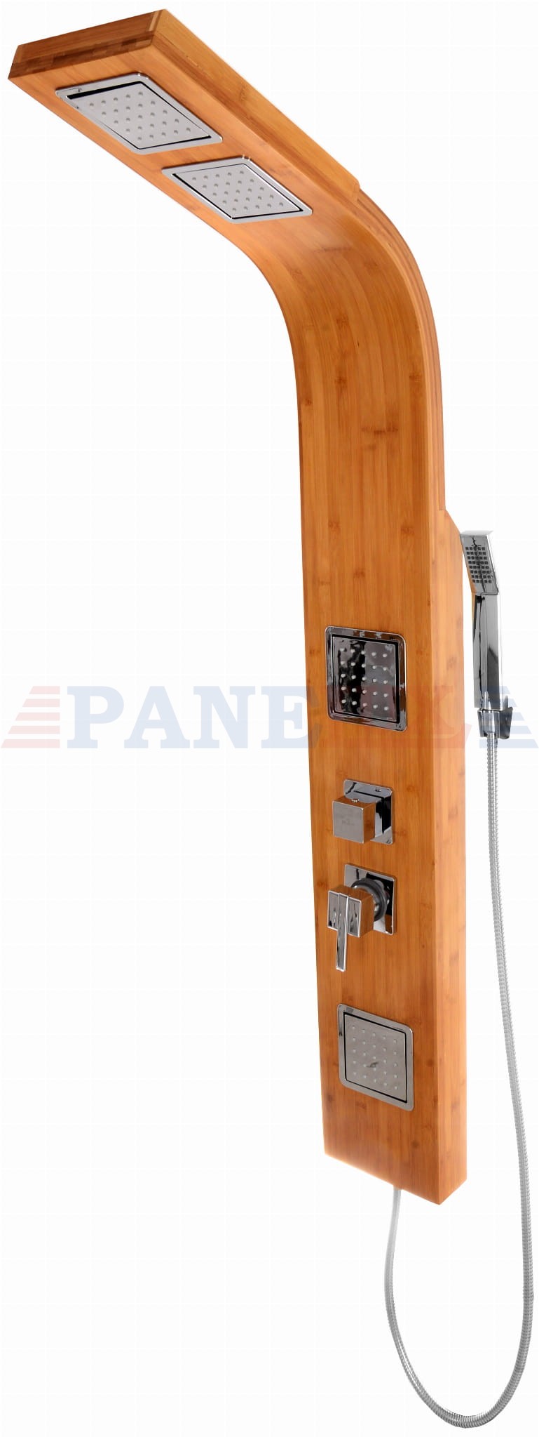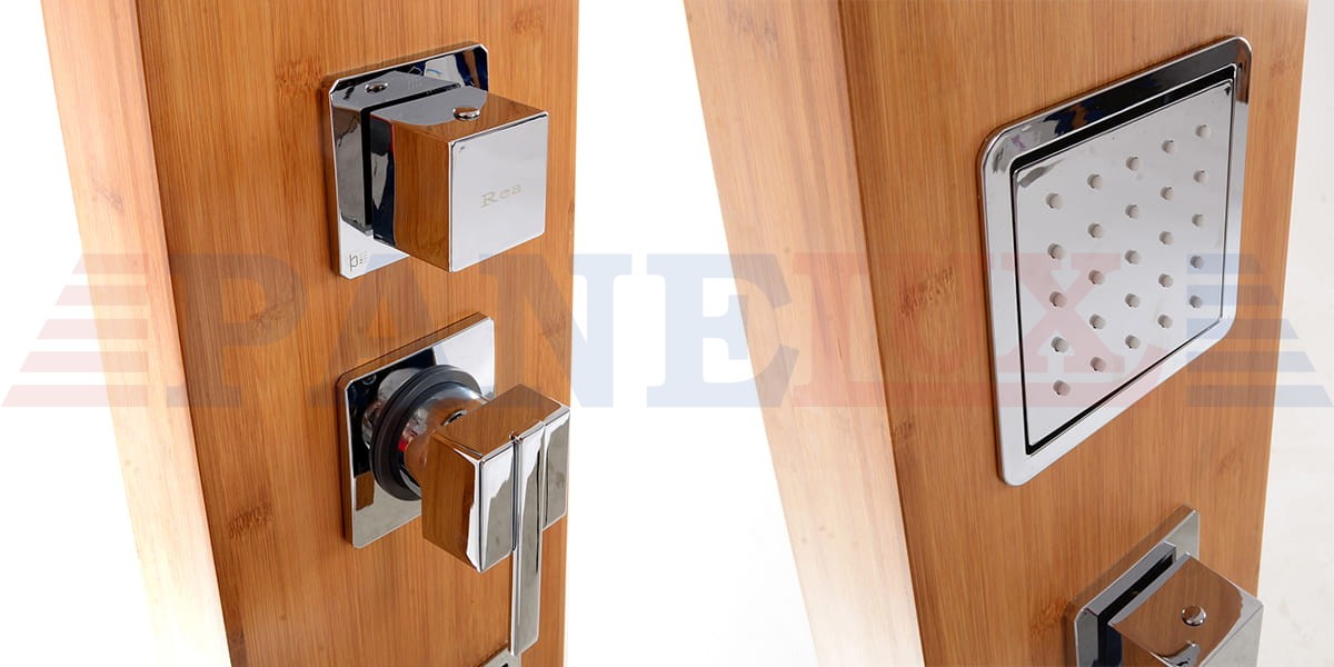 Model 9307 w kolorze akacjowym jest idealnym rozwiązaniem dla ludzi takich jak ty, którzy chcą całkowicie zmienić wystrój swojej łazienki na bardziej nowoczesny i funkcjonalny. Panel ten jest wykonany z wysokiej jakości drewna bambusowego z domieszką chromowanych elementów, takich jak pokrętła do regulacji temperatury i zmiany trybu między słuchawką a deszczownicą.
