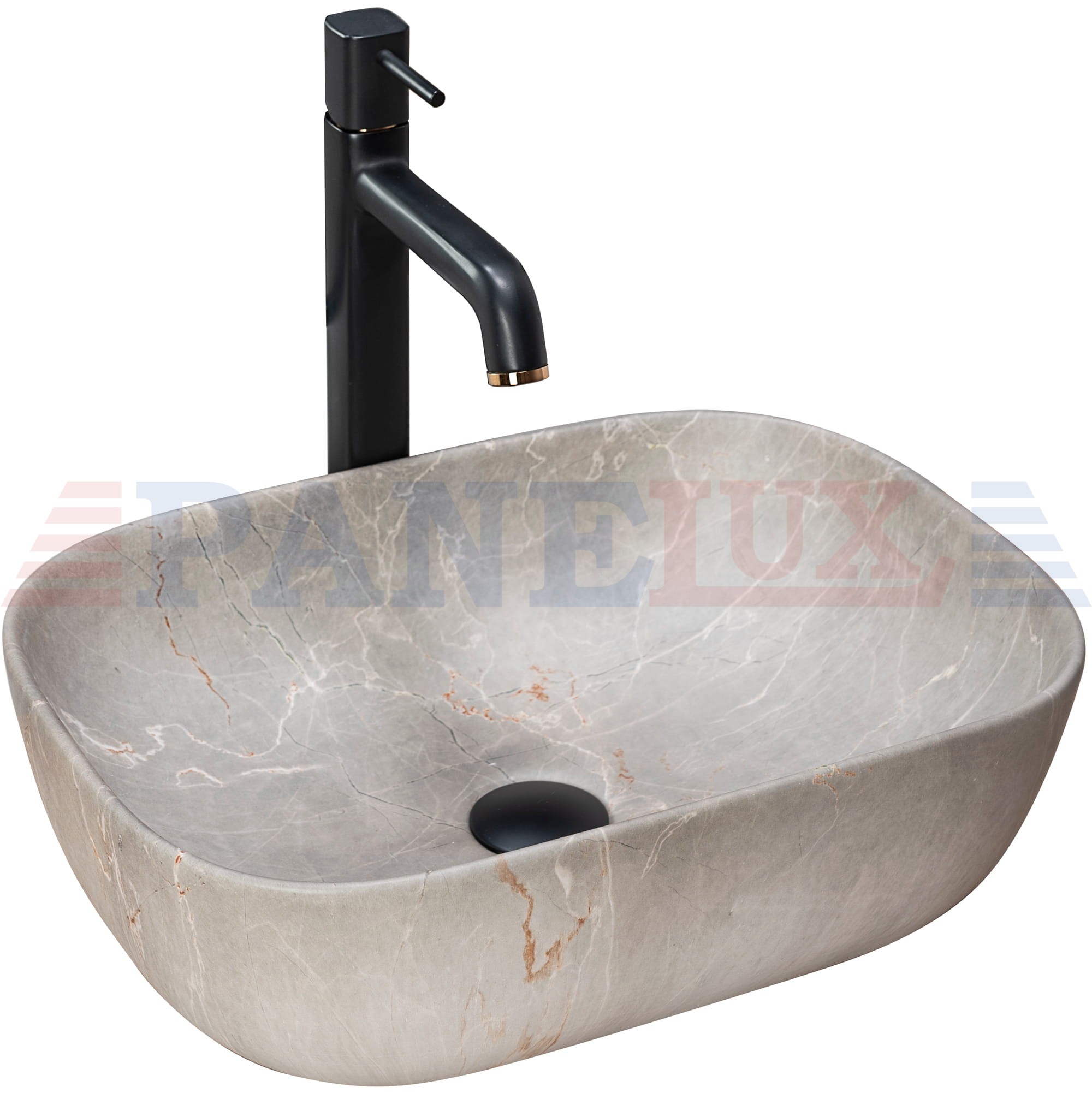 Piękna umywalka imitująca kamień – Livia Beige. Dzięki technice w jakiej została wykonywana wierzchnia warstwa umywalki, każdy egzemplarz posiada niepowtarzalny i unikalny wzór. Efekt ten imituje naturalny kamień.