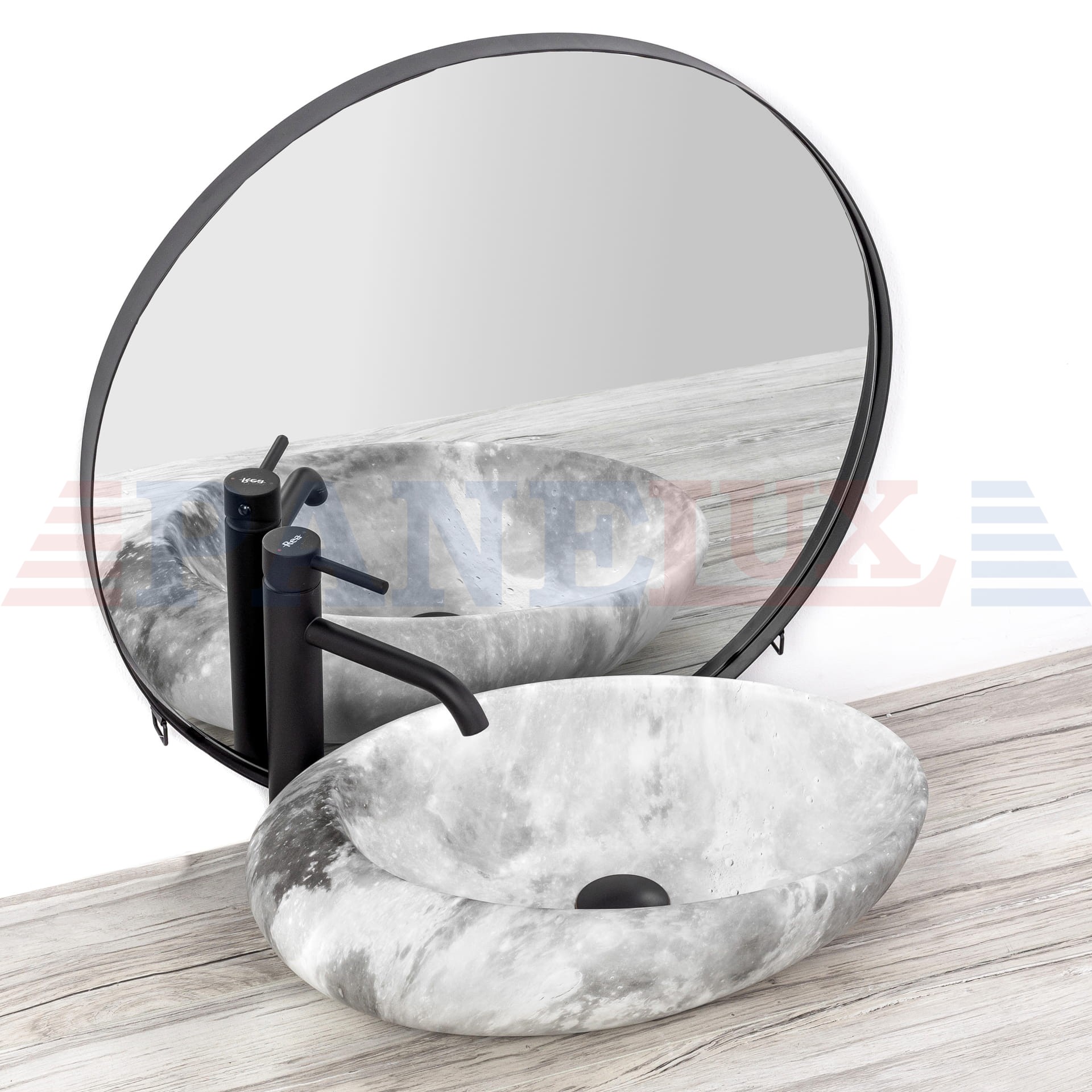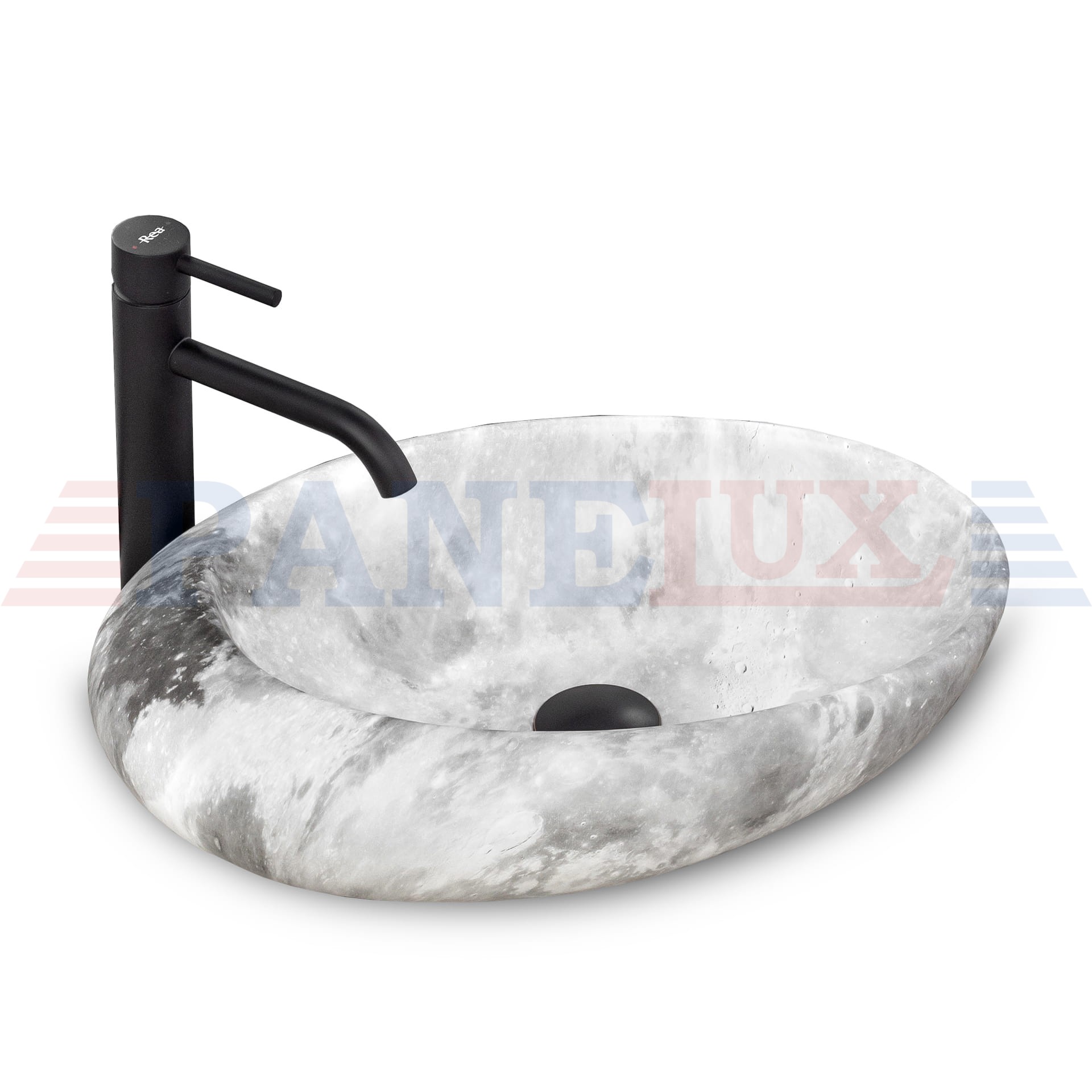 Nowoczesna seria umywalek imitujących kamień. Dzięki technice w jakiej została wykonywana wierzchnia warstwa umywalki, każdy egzemplarz posiada niepowtarzalny i unikalny wzór. Efekt ten imituje naturalny kamień. Ergonomiczny kształt misy pozwala na swobodny odpływ wody. Umywalkę można zamontować na blacie lub szafce. W ofercie posiadamy idealne wysokie baterie oraz syfony w wielu kolorach, przeznaczone do tej umywalki.