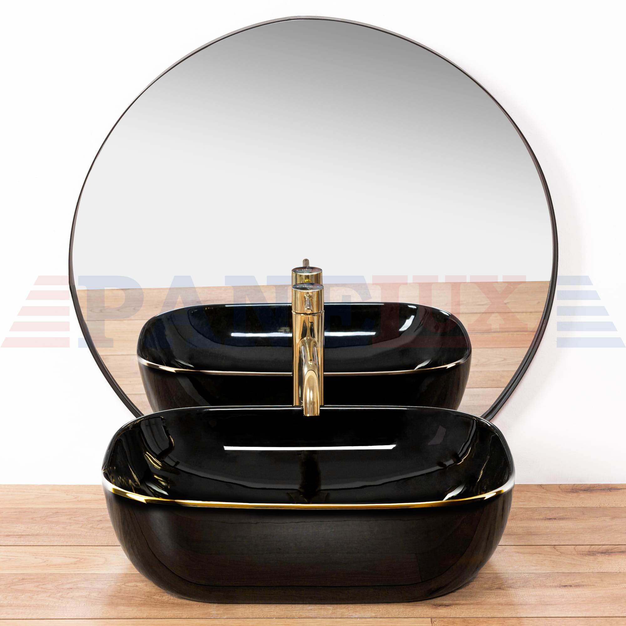 Dwukolorowa umywalka będzie świetnym urozmaiceniem aranżacji łazienki. Ciekawe i oryginalne zestawienie przeciwstawnych kolorów – czerni i złota. Umywalka jest przystosowana do montażu na blacie bądź szafce. Została wykonana z wysokogatunkowej ceramiki sanitarnej. Dzięki specjalnej fazie produkcji jest trwała i łatwa w utrzymaniu czystości.