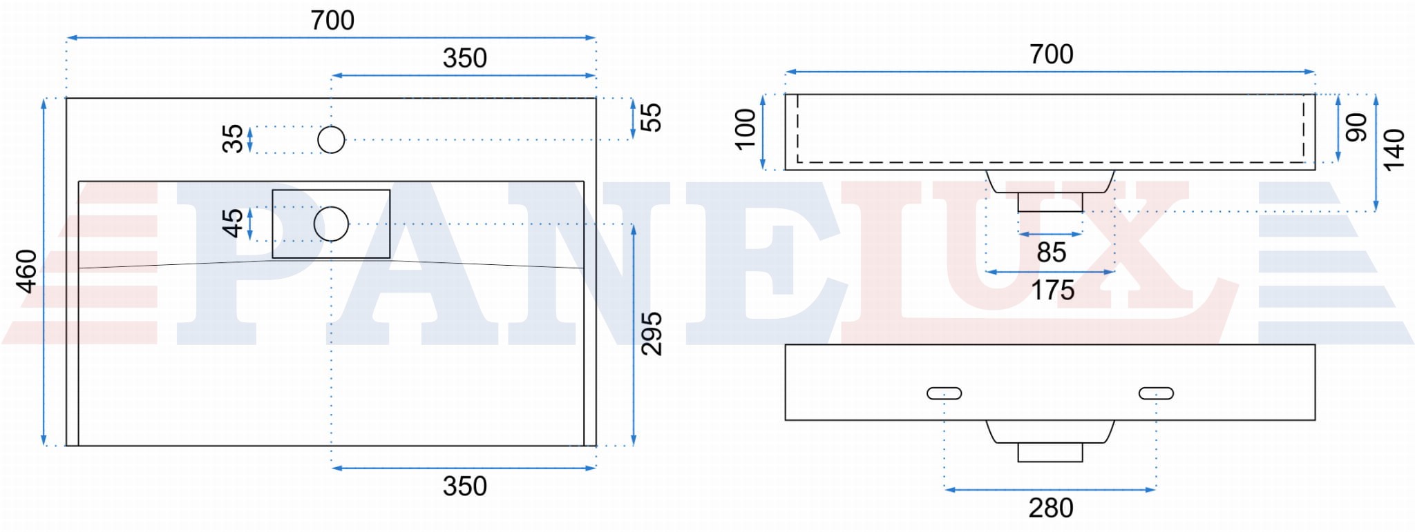 | Długość umywalki: | 700 mm |
