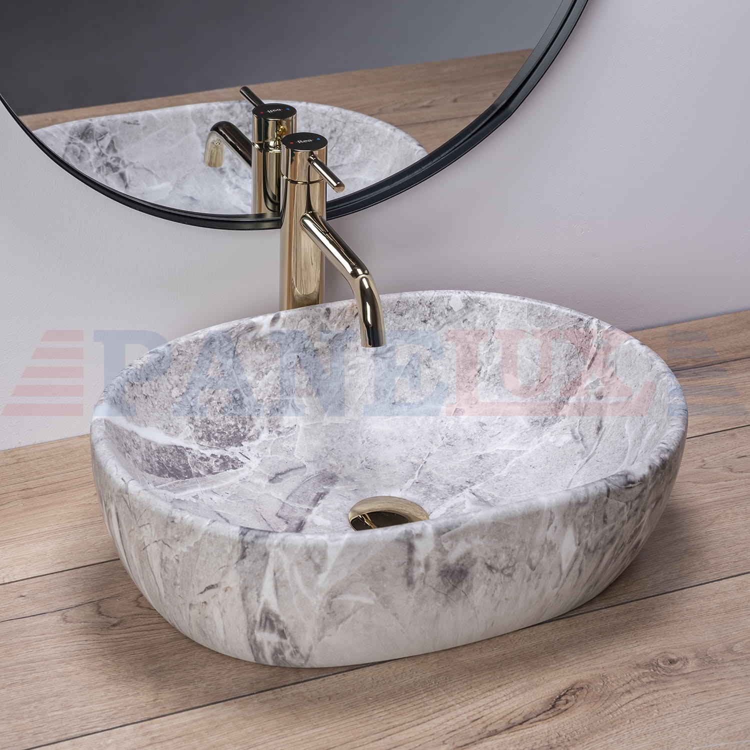 Piękna umywalka imitująca kamień – LARA Stone. Dzięki technice w jakiej została wykonywana wierzchnia warstwa umywalki, każdy egzemplarz posiada niepowtarzalny i unikalny wzór. Efekt ten imituje naturalny kamień.