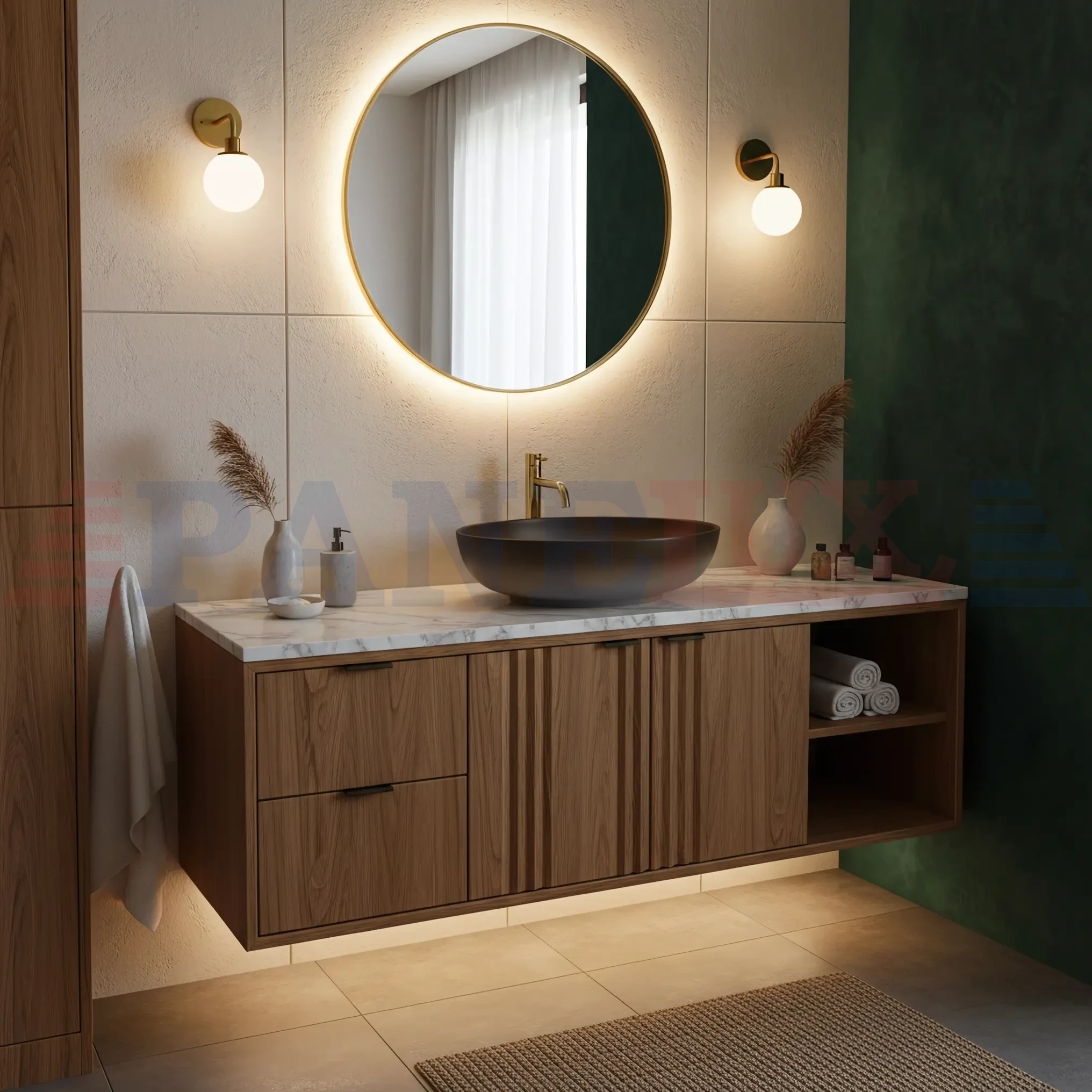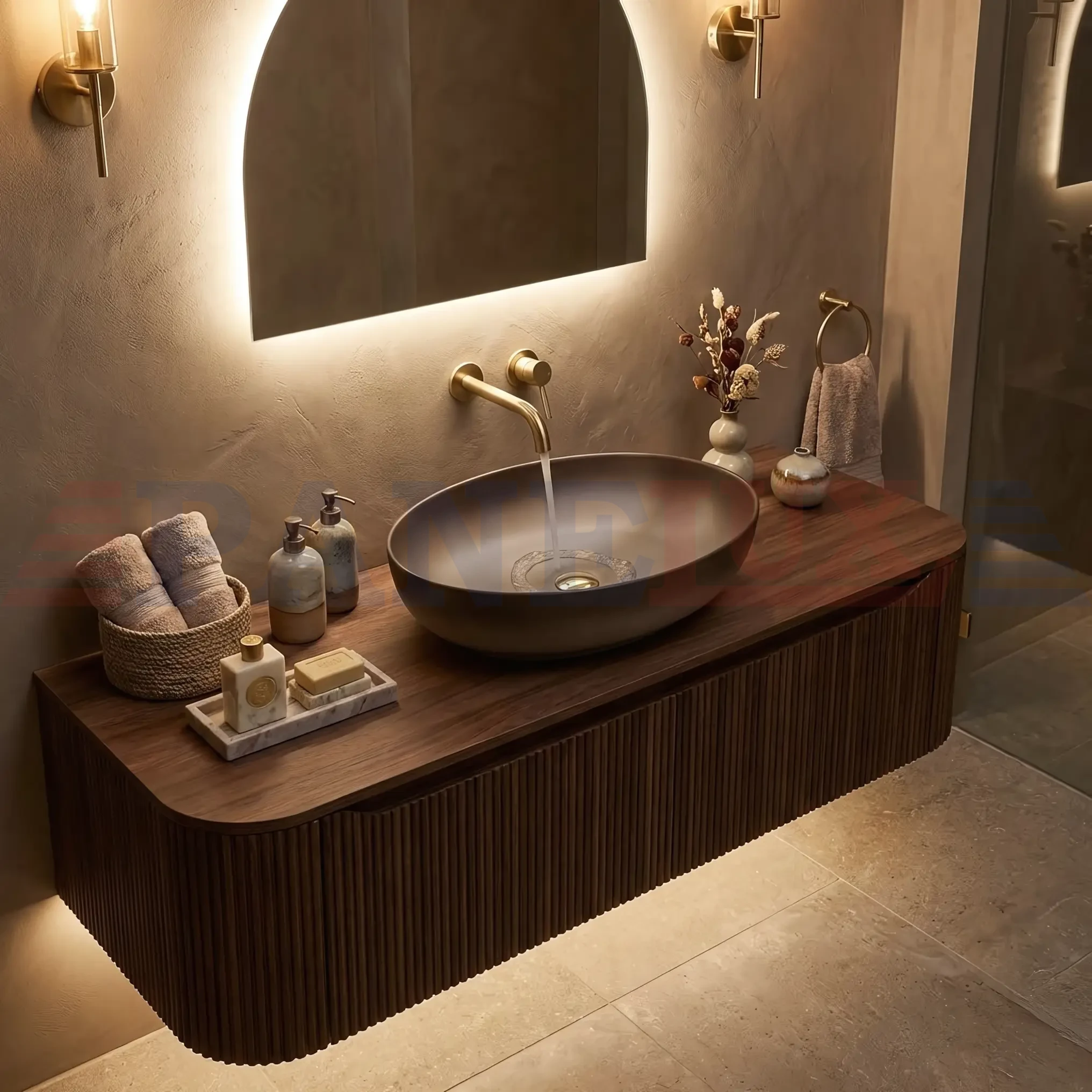 - Montaż nablatowy – konstrukcja przystosowana do instalacji na blacie lub szafce łazienkowej pozwala na estetyczne wyeksponowanie ozdobnej bryły i oszczędność miejsca wewnątrz mebla.