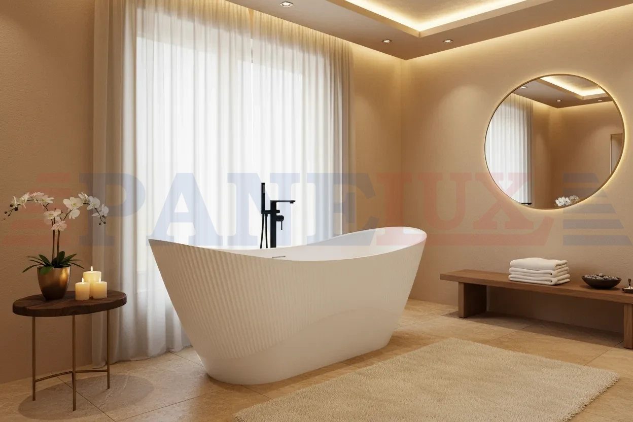 Wanna Atena to połączenie elegancji, funkcjonalności i nowoczesnego wzornictwa. Jej unikalna ryflowana powierzchnia nadaje całości wyrafinowanego charakteru i wprowadza do łazienki nutę stylu inspirowanego współczesnym designem wnętrz. Smukła, opływowa forma z delikatnie unoszącymi się krawędziami sprawia, że model Atena prezentuje się niezwykle lekko i estetycznie, stanowiąc centralny punkt każdej strefy kąpielowej.