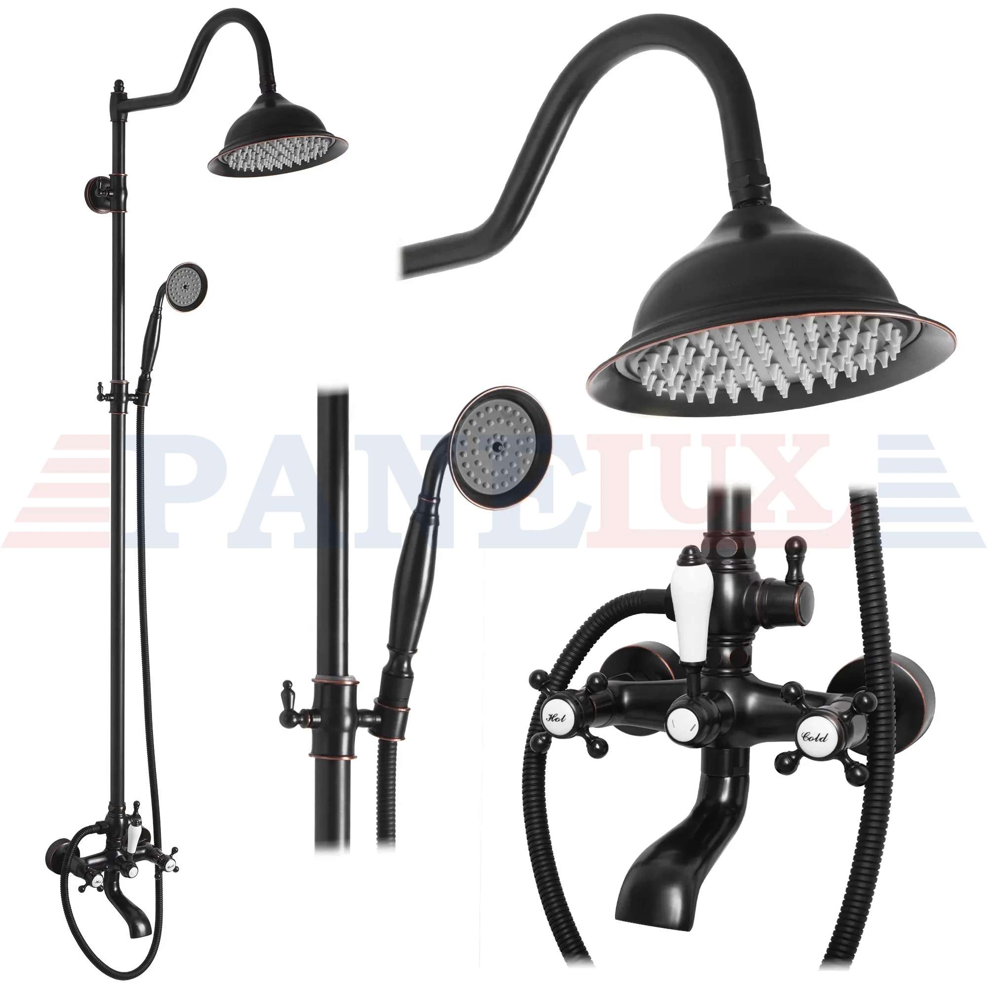 | W zestawie: | bateria, deszczownica, ramię do deszczownicy, wylewka, wąż 1500 mm, słuchawka, uchwyt na słuchawkę, maskownice |