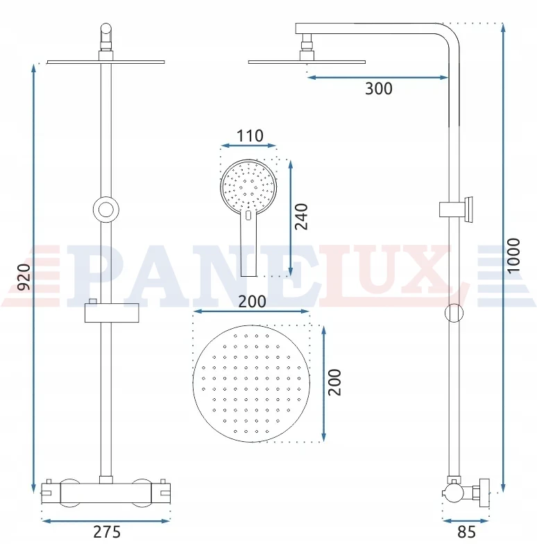 | W zestawie: | bateria, deszczownica, ramię do deszczownicy, wąż 1500 mm, słuchawka, uchwyt na słuchawkę, maskownice |