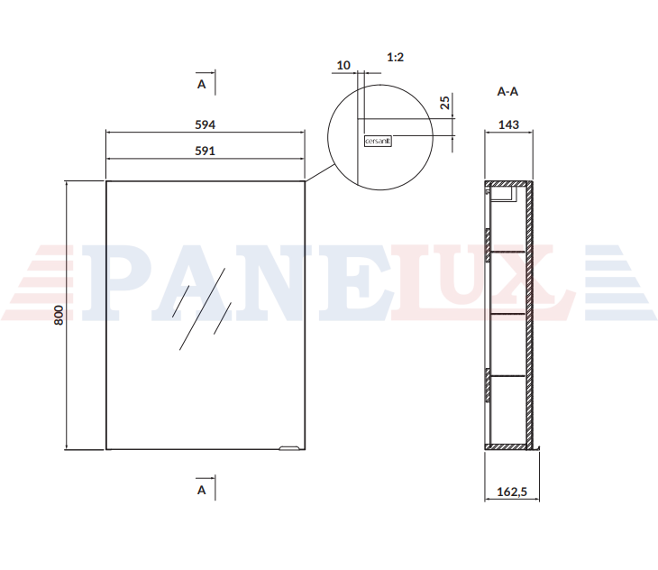 Lustrzany front, korpus z płyty wiórowej laminowanej, szafka lustrzana, wygodny srebrny uchwyt, cichy domyk soft close, 3 szklane półki wewnątrz. Płyta wiórowa z ktorej jest szafka posiada Certyfikat FSC MIX CREDIT SGSCH-COC-007574.